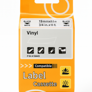 Dymo Label Maker -vaihtokasetit on valmistettu polyesterimateriaalista, kestävistä, pyyhittävistä tarroista sisäkäyttöön. Kestää täydellisesti vettä, kemikaaleja, UV-säteilyä, hankausta, öljyä, likaa, haalistua jne. Jaettu taustarakenne tekee siitä helpon kuorimisen. Poista tarrat jättämättä liimajäämiä.  Nämä tarranauhat on tarkoitettu  sisä- ja ulkokäyttöön, kuten toimistossa, kotona tai (kylmä)varastossa.