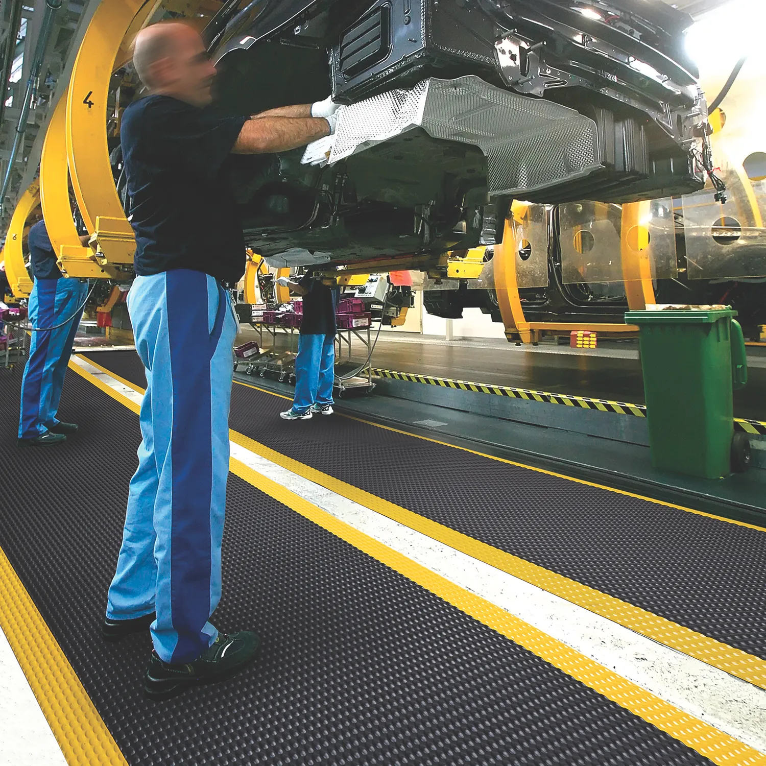 Huippuluokan ergonominen käyttökokemus, jossa mukavuus, kestävyys ja turvallisuus yhdistyvät. Sky Trax® on suunniteltu niille, jotka eivät halua tehdä kompromisseja näiden kriteerien suhteen. Ergonominen hyöty perustuu ainutlaatuiseen kuplamuotoiluun yhdistettynä 19 mm paksuun työskentelyalustaan. Yhdistelmä erittäin kulutusta kestävästä pintakerroksesta ja joustavasta mikrosoluvinyylipohjasta tarjoaa maksimaalisen väsymyksen lievityksen. Parantaa liukastumisenkestävyyttä ja liikkumisen vapautta; testattu R9-luokituksen mukaisesti standardin DIN51130 ja BG-säännön BGR181 mukaan. Varustettu RedStop™-liukumattomalla taustalla, joka estää mattojen siirtymisen. Sivuilla olevat keltaiset reunat täyttävät OSHA-koodin 1910-144 vaatimukset. Viistetyt reunat kaikilla neljällä sivulla minimoivat kompastumisriskin. Elinikäinen takuu Uni-Fusion™-laminointiteknologialle.