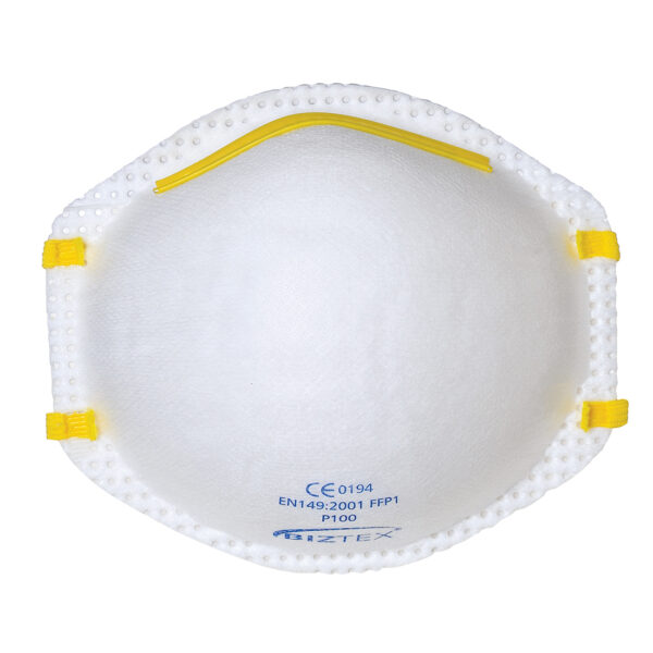FFP1-luokan suojain on suunniteltu suojaamaan hengitysteitä ärsyttävältä pölyltä, höyryltä ja kuiduilta mm. kivipöly, selluloosa, purkutyöt. P100 sopii käytettäväksi epäpuhtauksien konsentraatioiden ollessa 4 X WEL. Hengityssuojain kuuluu BizTex mallistoon*.