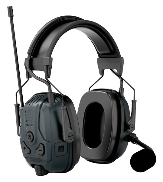 Ladattava Headset Guardio Freebird PRO kuulonsuojain, jossa on sisäänrakennettu radiopuhelin, bluetooth ja kuuleva toiminto.