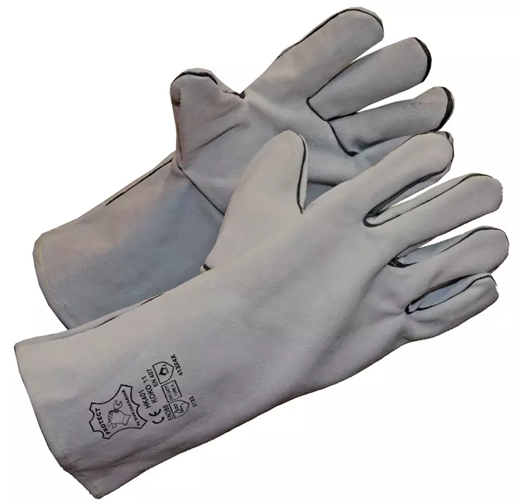 Hitsaajansormikas, valikoitua nautahaljasta, vuoriton, saumasuojattu malli. EN 12477 luokiteltu hitsaajansormikas.
