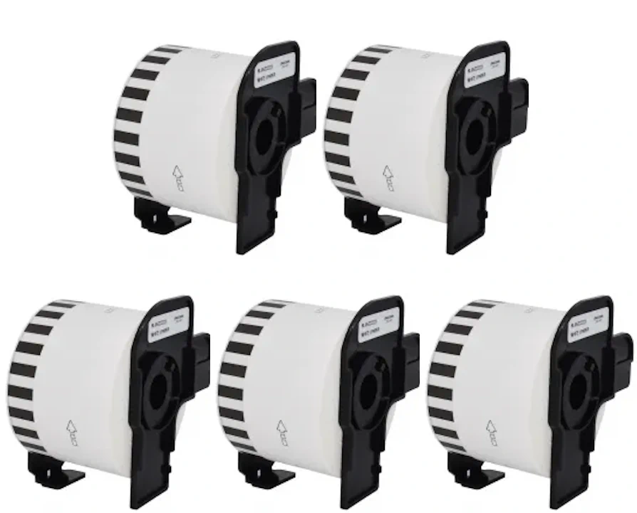 Etikettirullia Brother QL -tarratulostimille. Jatkuva etikettinauha mahdollistaa eri pituisten tarrojen tulostamisen esimerkiksi osoite-, lähetys- ja varastomerkintään. Edullinen ja laadukas non-OEM vaihtoehto päivittäiseen käyttöön.