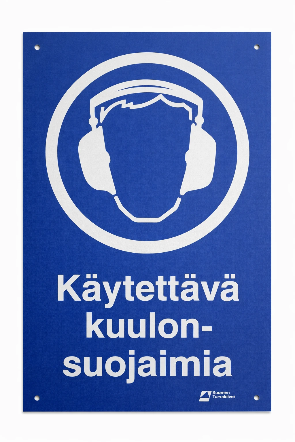 Kylttiä suositellaan käytettäväksi sisätiloissa. Asennuksen helpottamiseksi kulmissa on esiporatut reiät.
