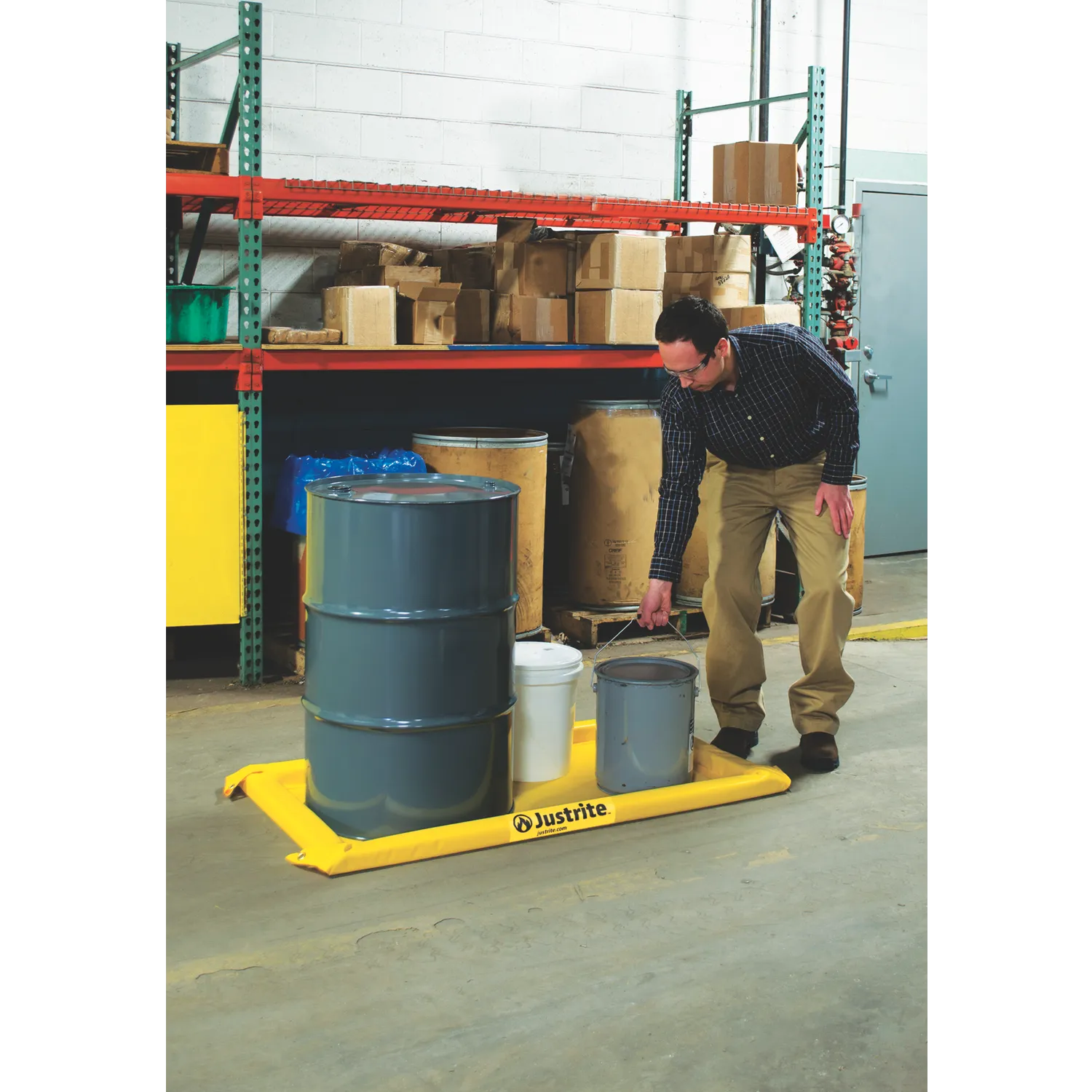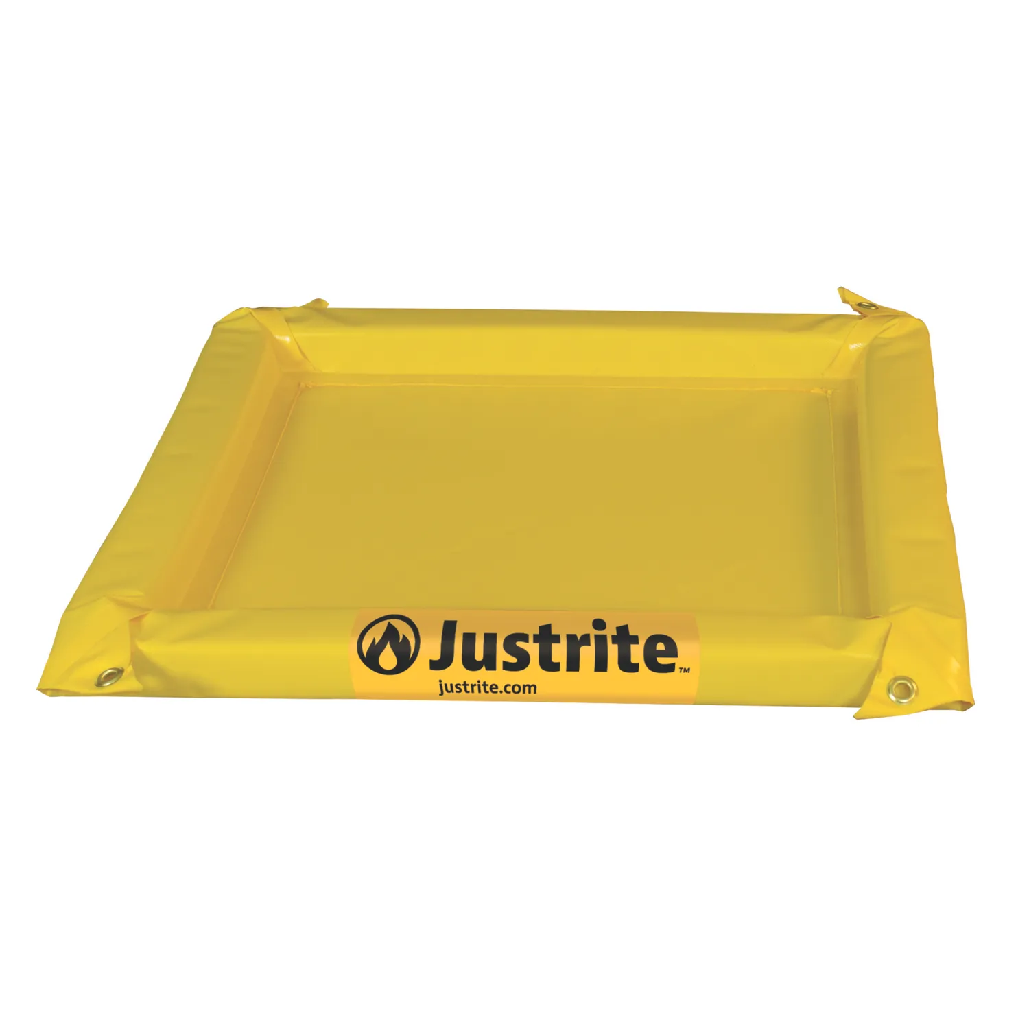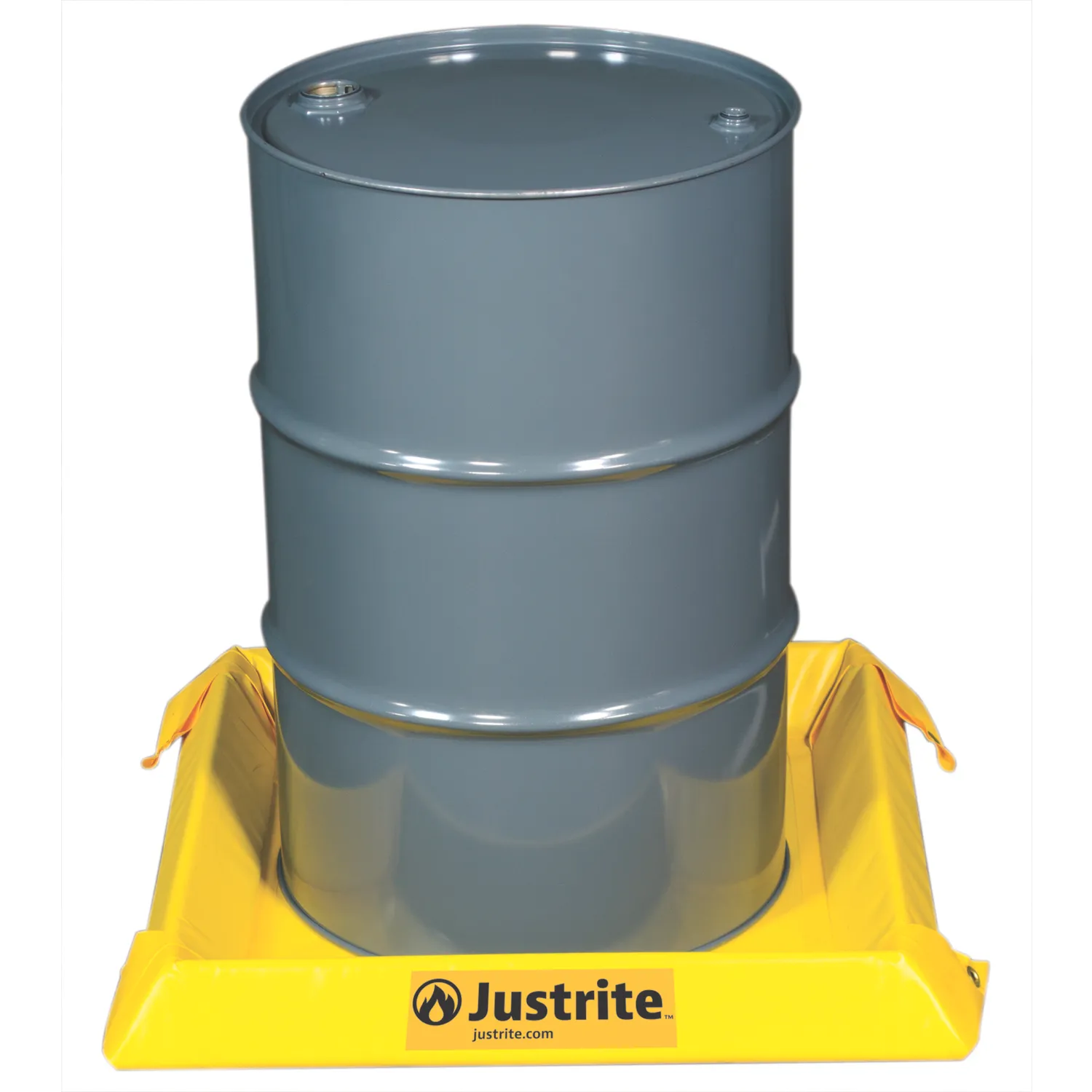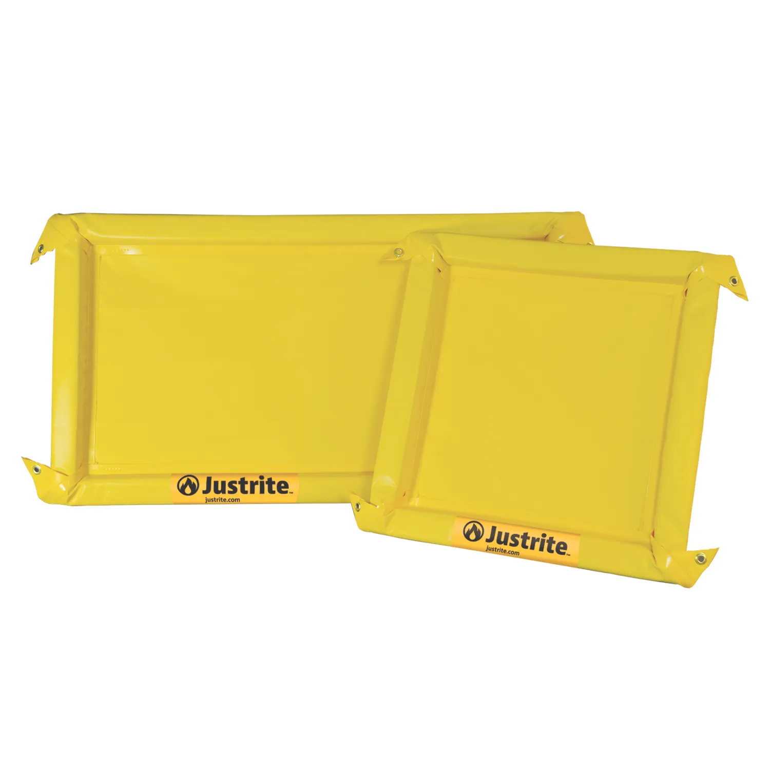 Kompakti ja joustava vuotoallas , joka on heti käyttövalmis työpajassa tai kentällä. Ei vaadi kokoonpanoa – avaa vain ja käytä. Uretaanivaahtomuoviset sivuseinät helpottavat kulkua ilman ramppia. Seinät palautuvat nopeasti paikalleen ilman muistinmenetystä. Pienet vuodot ja vuotokohdat voidaan nopeasti hallita tynnyrien, koneenosien, akkujen ja laitteiden väliaikaisen varastoinnin aikana. Kevyt PVC-pinnoitettu kangas tarjoaa laajan UV- ja kemikaalinkestävyyden. Kiinnitä suojaus paikalleen kulmissa olevilla messinkisilmukoilla. Kiinnityspiikit eivät sisälly toimitukseen. Tilaa valinnaiset ritilät pitämään tuotteet ja koneet nesteen yläpuolella. Auttaa noudattamaan EPA:n vuotojen ehkäisyä koskevia vaatimuksia (SPCC).