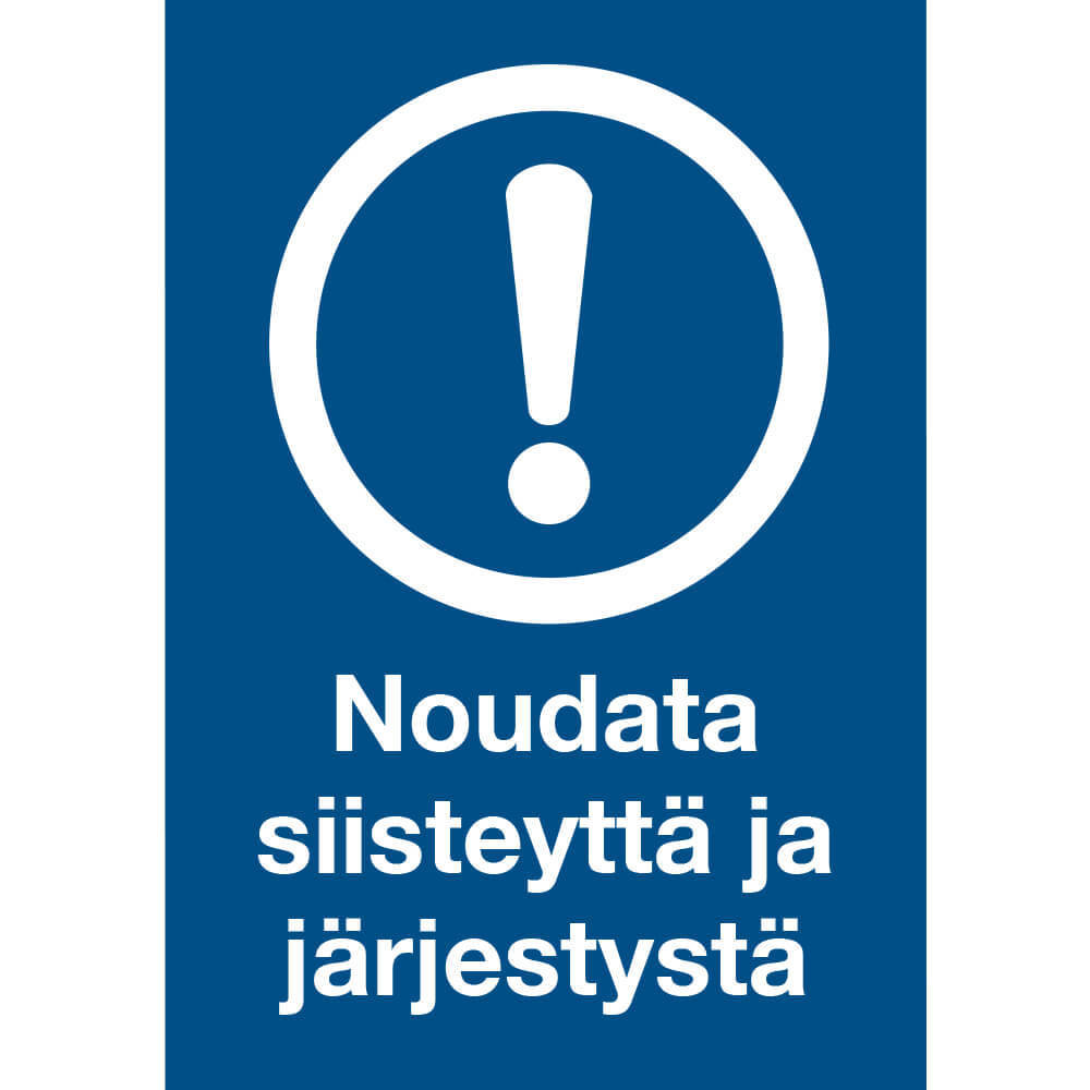 Noudata siisteyttä ja järjestystä -kyltti, muovinen.