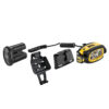 Duo S valaisin, 23,68 Wh akku (3,2 Ah, 7,4 V), Petzl työkypäriin sopivat kypäräkiinnikkeet valaisimelle eteen ja akulle taakse, kuljetuspussi ja verkkovirtapikalaturi 220V/110V sopivilla pistokkeilla sekä Petzl heijastintarra jonka voi haluttaessa liimata akkuun, tuo lisäturvaa kun havaittavuus takaa päin paranee.