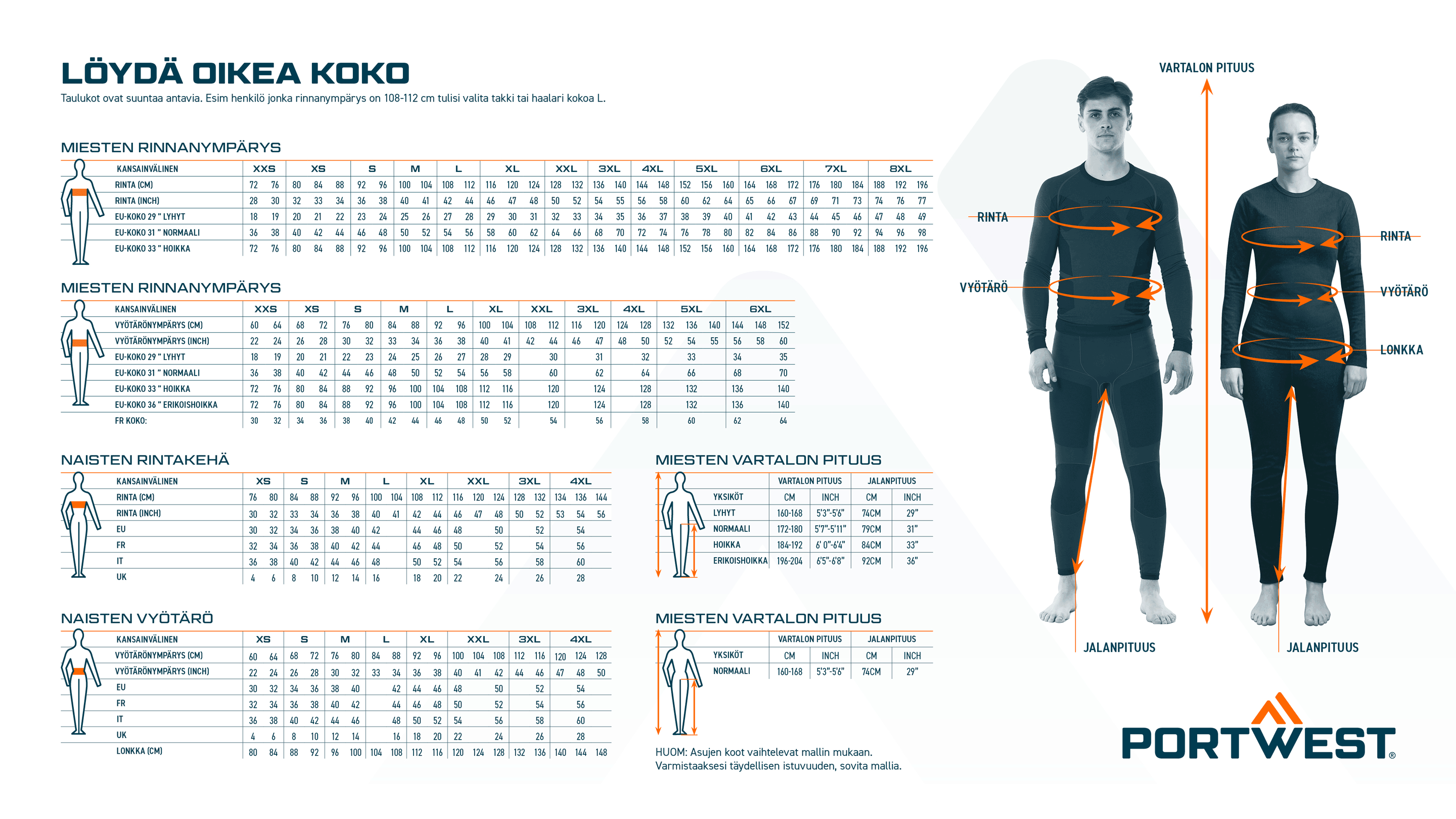 Työvaatteet kokotaulukko