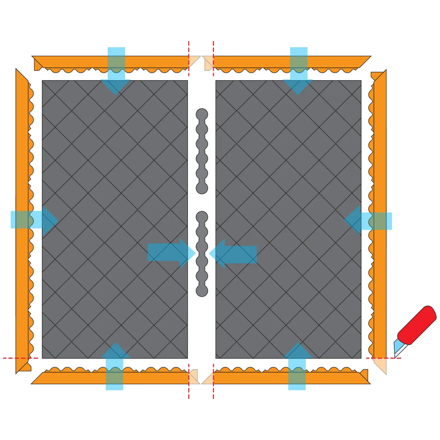 Vakiokokoiset matot yksittäisille työpisteille ovat vapaasti asennettavia eivätkä vaadi kiinnitystä. Kolmella sivulla olevat hyvin näkyvät oranssit nitriilikumireunat lisäävät turvallisuutta ja ehkäisevät kompastumista. Pysyvät paikallaan. Ei sisällä silikonia, joten soveltuu ajoneuvojen maalaamoihin.
