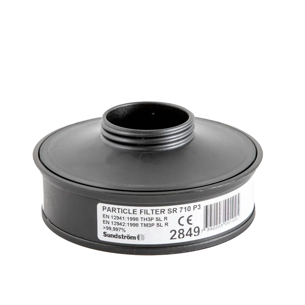 SR 710 -hiukkassuodattimessa on erikoiskierre ja se on suunniteltu käytettäväksi Sundströmin akkukäyttöisten SR 500-/SR 500 EX-/SR 700 -puhaltimien kanssa erillisenä hiukkassuodattimena, eli sitä ei voida yhdistää kaasusuodattimen kanssa. Suodatin on P3 R* -tyyppiä ja se suojaa kaikenlaisilta hiukkasepäpuhtauksilta. Jos SR 500-/SR 500 EX -puhaltimeen tarvitaan yhdistelmäsuodatinta, kaasusuodatin on yhdistettävä SR 510 -hiukkassuodattimen kanssa. Suodatin on yhdistettävä SR 221 -esisuodattimeen sen käyttöiän jatkamiseksi. * R (Uudelleenkäytettävä): Suodatin on tarkoitettu käytettäväksi pidempään kuin yhden työvuoron ajan.