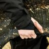 - Erittäin pitkä vetoketju, tarranauha ja myrskyläppä lahkeissa